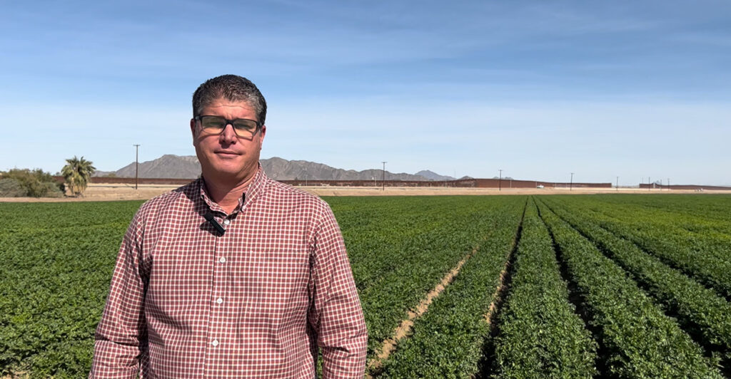 Mellon is a fifth-generation farmer. He and his two older brothers own the family’s 5,000-acre farm, where they grow lettuce, broccoli, cauliflower, and spinach in the winter and cantaloupes, wheat, alfalfa, cotton, and other crops during the summer.