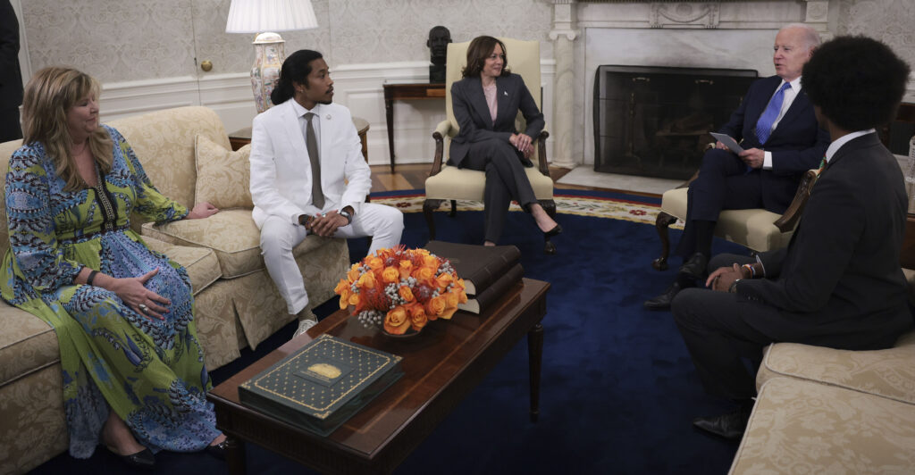 “You’re standing up for our kids, you’re standing up for our communities,” Biden told the three Democrat state legislators in their Oval Office meeting, referring to the lawmakers’ gun control advocacy.