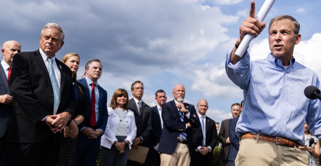Heritage Foundation President Kevin Roberts joined the caucus members at the press conference and said passing another government funding bill would be “political cowardice” if the bill doesn’t reduce deficit spending and defend the border. (The Daily Signal is the news outlet of The Heritage Foundation.)