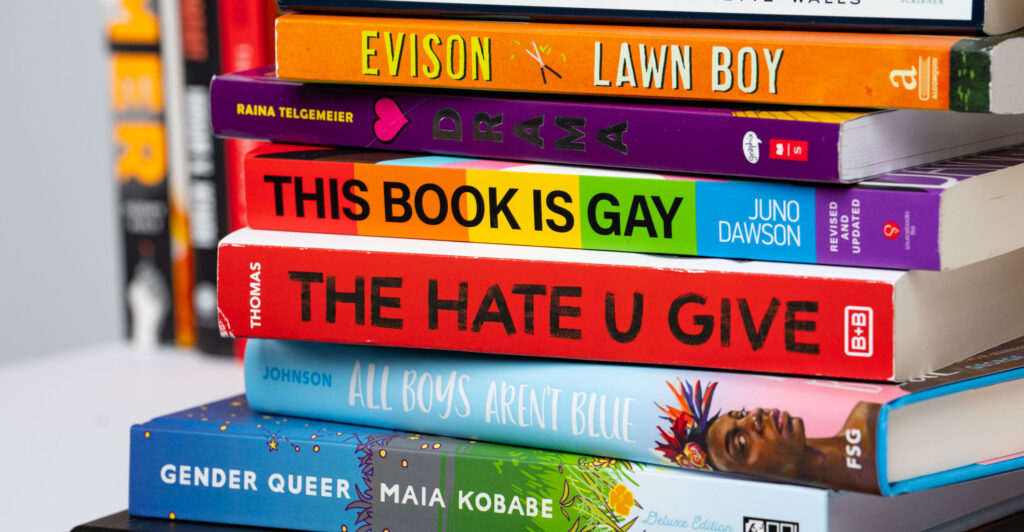The narrator-free film proceeds to show a series of images of dozens of books that the documentary claims have been “challenged, restricted, or banned.” Short excerpts of text from each book scroll across the screen as the books are introduced, and that’s where the dishonesty really revs up.