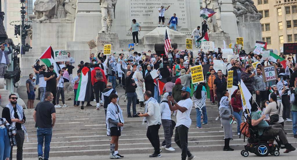 I had covered the pro-Palestine group’s Oct. 12 protest live for The Daily Signal and WIBC-FM (93.1) at Monument Circle in Indianapolis. Like other media representatives present, I recorded over an hour of footage filled with the slogans chanted by both pro-Israel and pro-Palestine demonstrators.