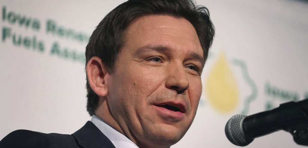 DeSantis was in Ames, Iowa, for a campaign stop with Never Back Down PAC. The Florida governor was discussing a ban on China’s buying of land in Florida when a protester with a flag reading “DeSantis: Climate Criminal” jumped on stage, according to a video posted on X, formerly Twitter, by CBS News reporter Aaron Navarro.