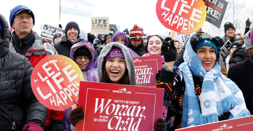 As the dad of four, I love that sound. We’re going to need them. We’re going to need all of you, for we meet today amid a pro-abortion media narrative of smug triumphalism. You’ve heard the story: Less than two years after the Supreme Court overturned Roe, the abortion industrial complex is celebrating an unprecedented political winning streak.