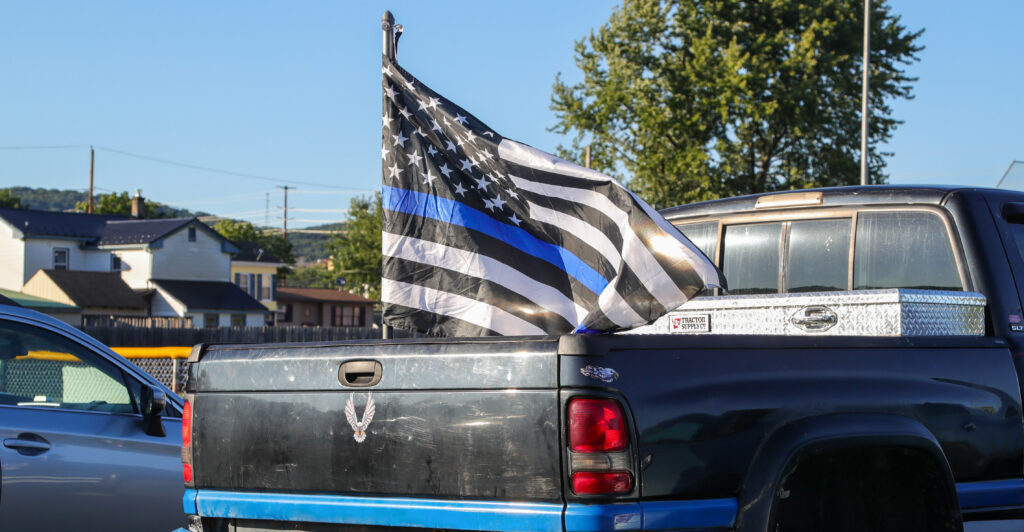 This tussle over the “Thin Blue Line” flag mirrors the debates over historical statues.