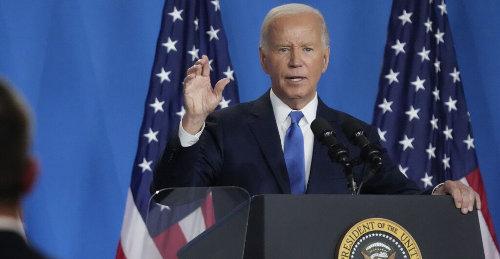 Biden talked about his success on the global stage at the top of the press conference, held at the conclusion of the 75th anniversary NATO summit in Washington. He also slammed former President Donald Trump, claiming his opponent “has no commitment to NATO.”