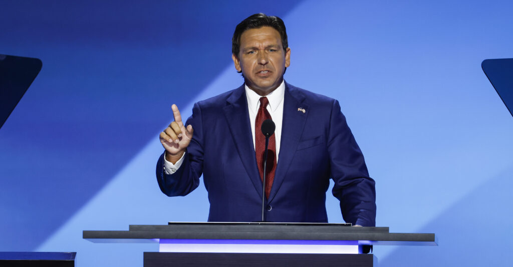 “We believe schools should educate, not indoctrinate,” DeSantis said. “We stand for parents rights, including universal school choice. We support law and order, not rioting and disorder.”