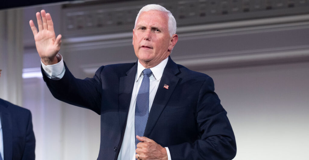 While assailing the “failures” of the “Biden-Harris administration”—and questioning Vice President Kamala Harris’ fitness to be president—Pence also expressed concern over growing Republican skepticism of U.S. military intervention abroad, the Republican National Committee’s newly moderate position on abortion, and other issues.