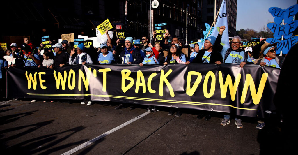 In the Big Apple, a wave of people protested Trump’s proposed plans concerning the mass deportation of illegal immigrants. Signs read: “We protect us” and “We won’t back down.” Protesters also reportedly chanted, “Here we are and we’re not leaving!”